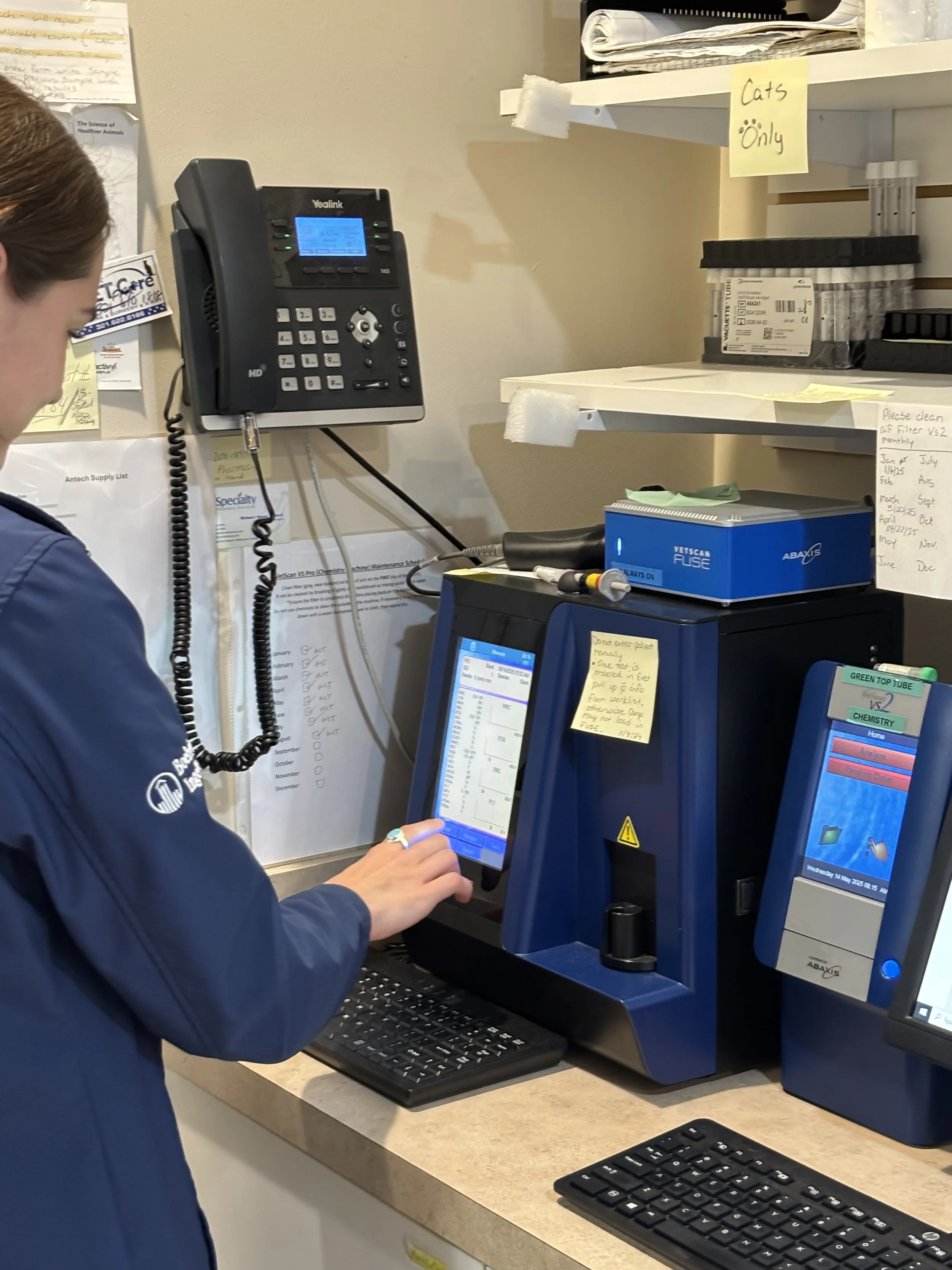 Digital x-ray machine quickly gets pictures of your pet. We also have digital dental x-rays!